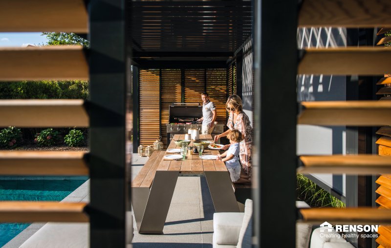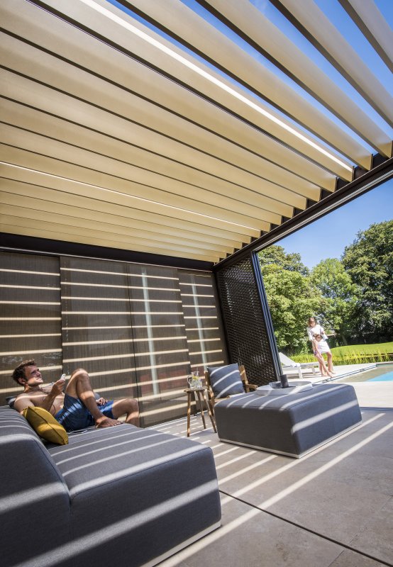 Dizajn pergoly Camargue od belgického výrobcu RENSON sa vyznačuje zmyselnými plochami, svalnatými tvarmi a čistými líniami. Elegantnejšie a precíznejšie stvárniť pergolu už ani viac nie je možné. Vďaka bohatému príslušenstvu je možné pergolu uzavrieť a to hneď niekoľkými spôsobmi. Vďaka jej robustnosti je možné integrovať screenové rolety, posuvný lamelový paravan alebo posuvné presklenené steny priamo do konštrukcie.